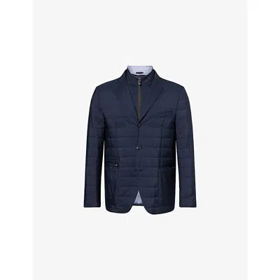 Mens Navy Blue Zipped-insert Quilted Woven Blazer