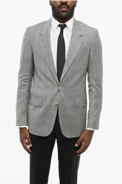 Virgin Wool Unlined Blazer With Check Motif In Gray