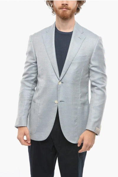 Virgin Wool Side Vents Notch Lapel Mantua 2-button Blazer In Grey