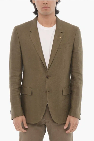 Linen And Silk Half-lined Gate 2-button Blazer In Brown