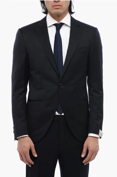 Virgin Wool Peak Lapel Mantua 1-button Blazer In Black