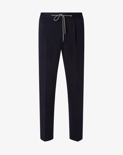 Navy Blue Wool, Silk And Linen Jacket With Herringbone Pattern