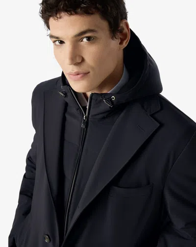 Blue Technical Fabric Coat With Detachable Vest In Black