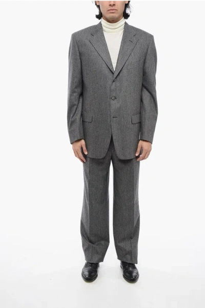 Cc Collection Virgin Wool And Cashmere 3-button Suit With Si In Gray