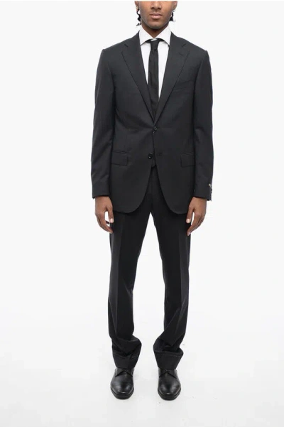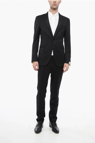 Virgin Wool Shawl Lapel 2-button Suit In Black