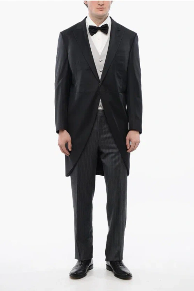 Virgin Wool Center Vent Peak Lapel Cerim.leader Ceremony Gro In Black