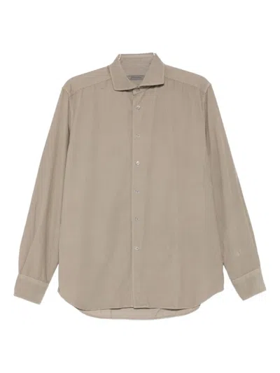 Clear Blue Shirt With Subtle Striped Pattern In Purple