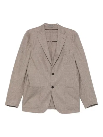 Chocolate Brown Virgin Wool Linen Blended Single Breasted Blazer