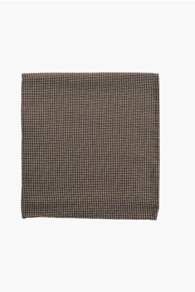 Micro Checked Silk Pocket Square In Black