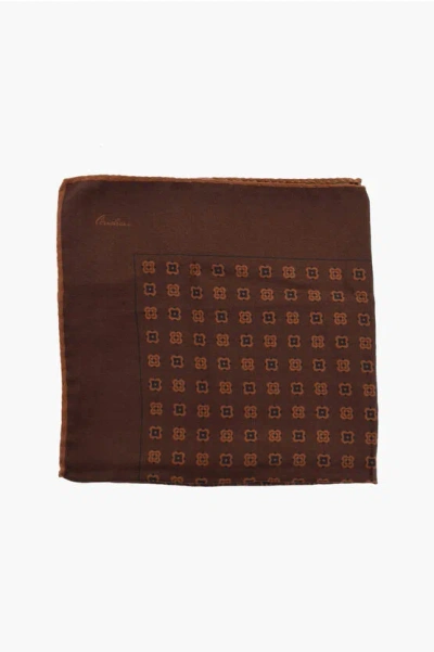 Patterned Silk Pocket Square In Brown