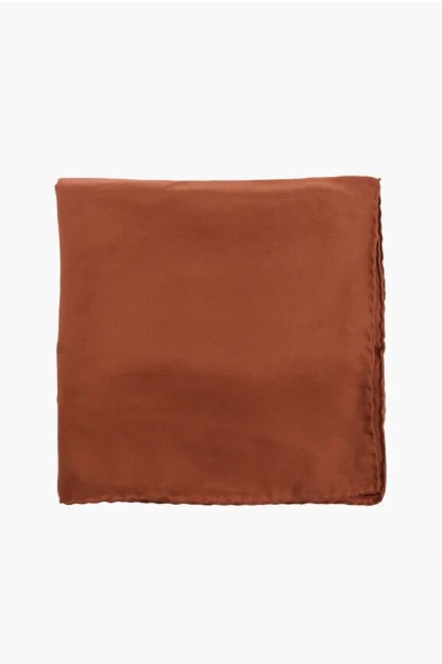 Solid Color Silk Pocket Square In Brown