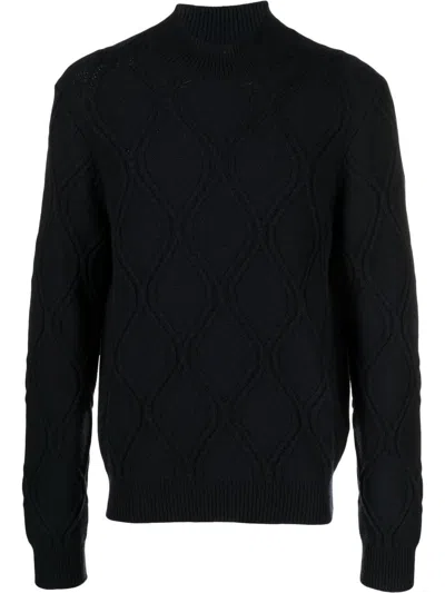 Cable-knit Turtleneck Jumper In Blue
