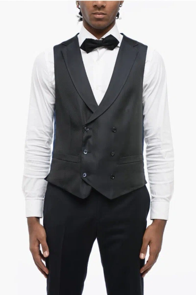 Code Double Breasted Silk Vest With Jetted Pockets