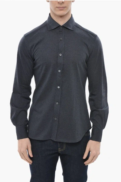 Cotton Jersey Shirt With Micro Motifs In Gray