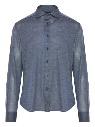 Silk Grey Knitwear Top With Classic Crew Neckline