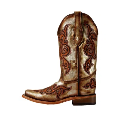 Women's Golden Leather Embroidery Western Bootie Zogg2012 In Brown