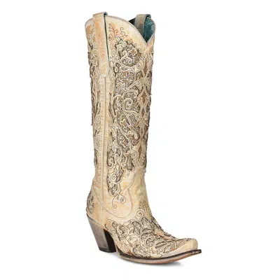 Pre-owned ® Ladies Bone White & Gold Studded Western Boots C3895