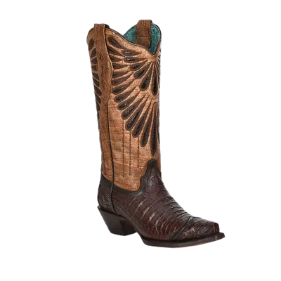 Pre-owned ® Ladies Brown Caiman Embroidery Snip Toe Western Boots A4184