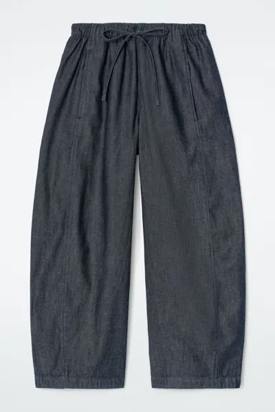 Pantaloni Cropped Barrel In Denim Grezzo In Blue