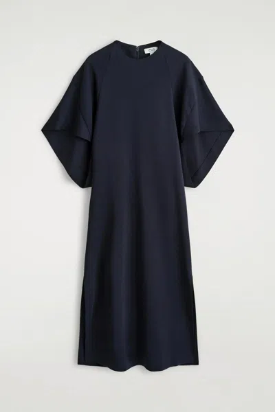 Abito Midi Drappeggiato Lana Dalle Linee Scultoree In Blue