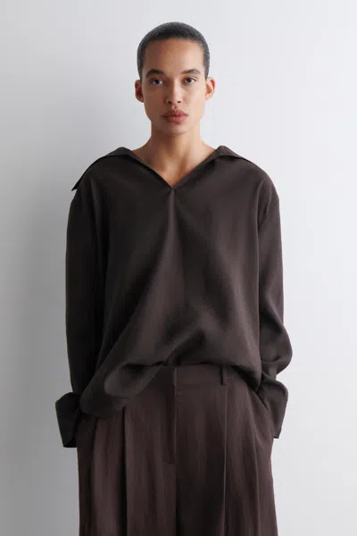 Wide-collar Modal Blouse In Brown