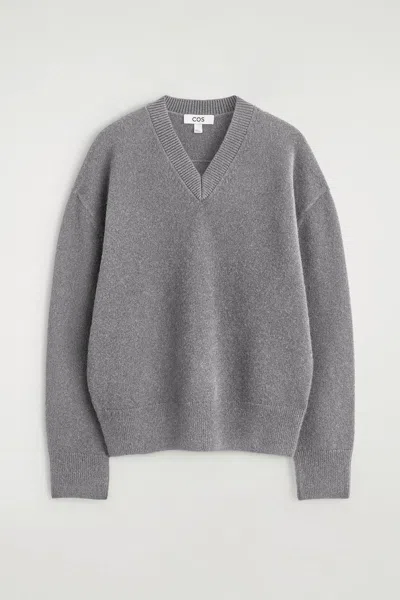 Rounded Wool V-neck Sweater In Gray