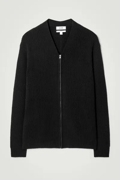 Bouclé-knit V-neck Zip-up Cardigan In Black