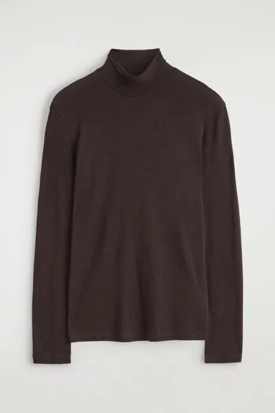 Slim Wool-jersey Roll Neck Top In Brown