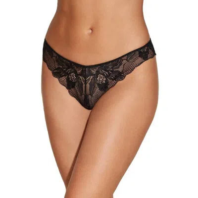 Women's Free Cut Underwear Black Stretch Scalloped Thong Gbo1126