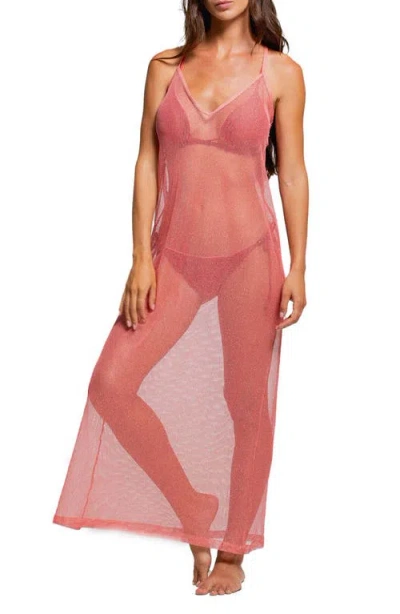 Metallic Sheer Halter Cover-up Maxi Dress In Pink