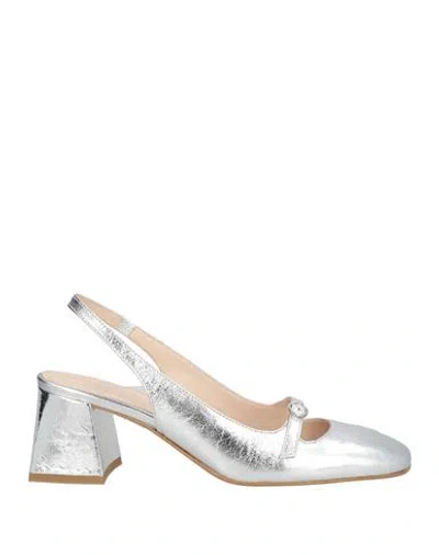 Woman Pumps Silver Size 9 Leather In Multi