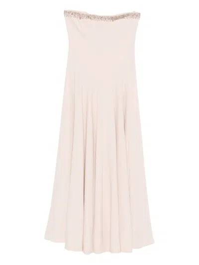 Beaded-embellished Strapless Dress In Pink