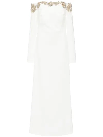 Eliza Jacquard Embroidered Maxi Dress In Offwhite/gold