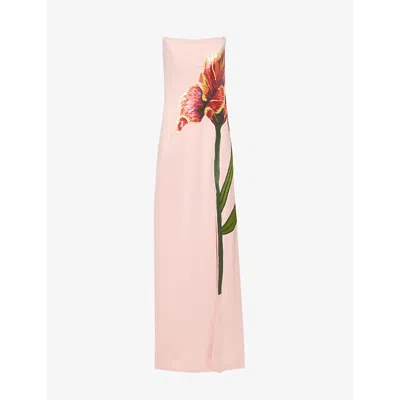 Delmara Strapless Cutout Embroidered Satin Midi Dress In Pink