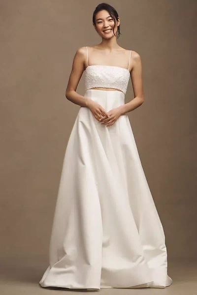 Cornilia Strapless Mikado Beaded Cut-out Wedding Gown In White