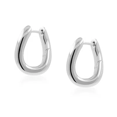 Women's Rounded Square Silver Huggie Hoop Earrings