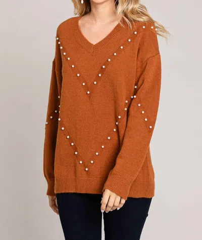 Pearl V-neck Sweater In Camel In Brown