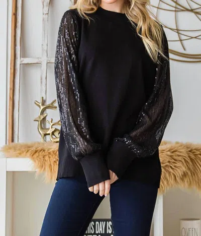 Sequined Sleeve Sweater In Black