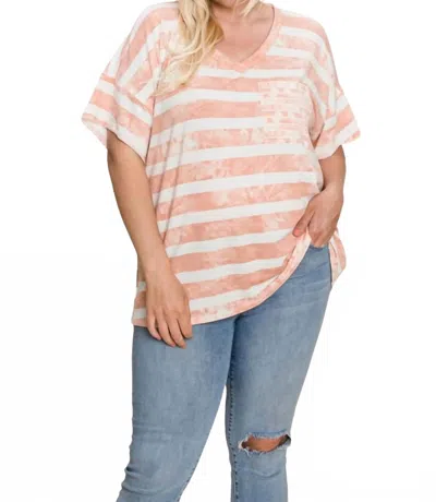 Striped Pocket Top - Plus In Ivory/rose In Pink