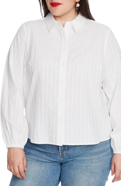Texture Cotton Blouson Button Down Top In Ultra White