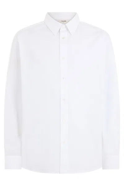 Celine Long Sleeved T-shirt In Ribbed Cotton Jersey In White