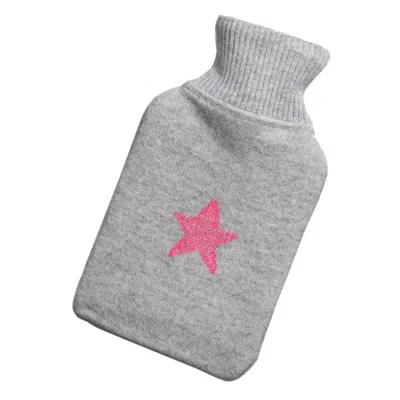 Cashmere Midi Hot Water Bottle Grey With Pink Star In Gray