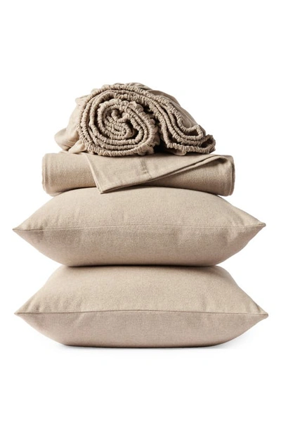 Cloud Brushed Organic Cotton Flannel Sheet Set In Camel Heather