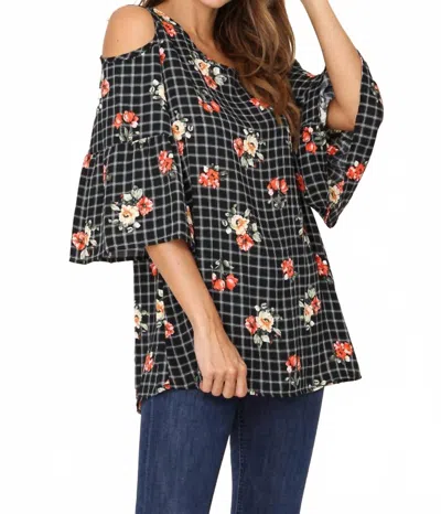Floral Print Cold Shoulder Tunic In Black In Multi