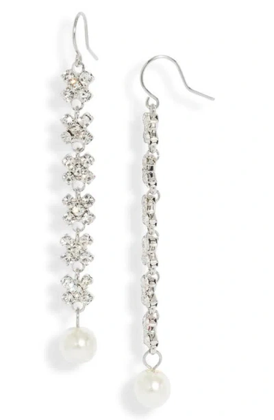 Crystal & Faux Pearl Drop Earrings In Silver/white