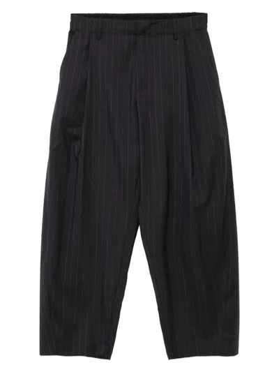 Pleated Pinstripe Trousers In Black