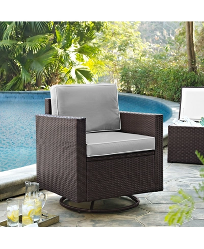 Palm Harbor Outdoor Wicker Swivel Rocker Chair With Cushions In Grey