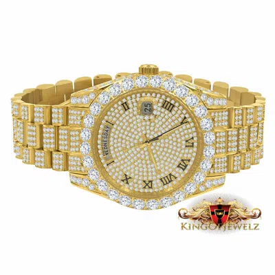 Pre-owned 18k Yellow Gold Finish Solid Stainless Steel Day Date Roman Dial Solitaire Bezel