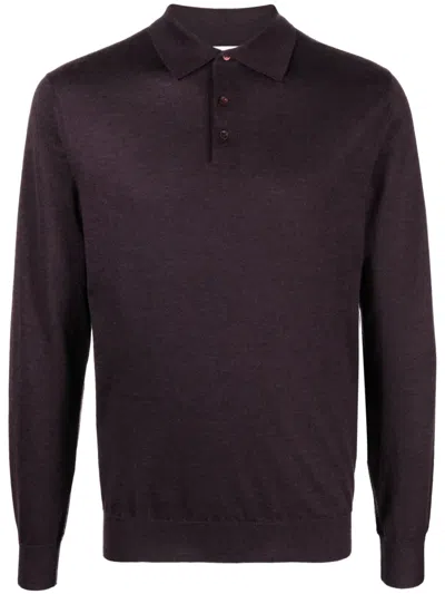 Fine-knit Long-sleeved Polo Shirt In Purple