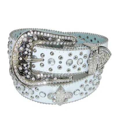 Women's Fleur De Lis Studded Rhinestone Belt In White